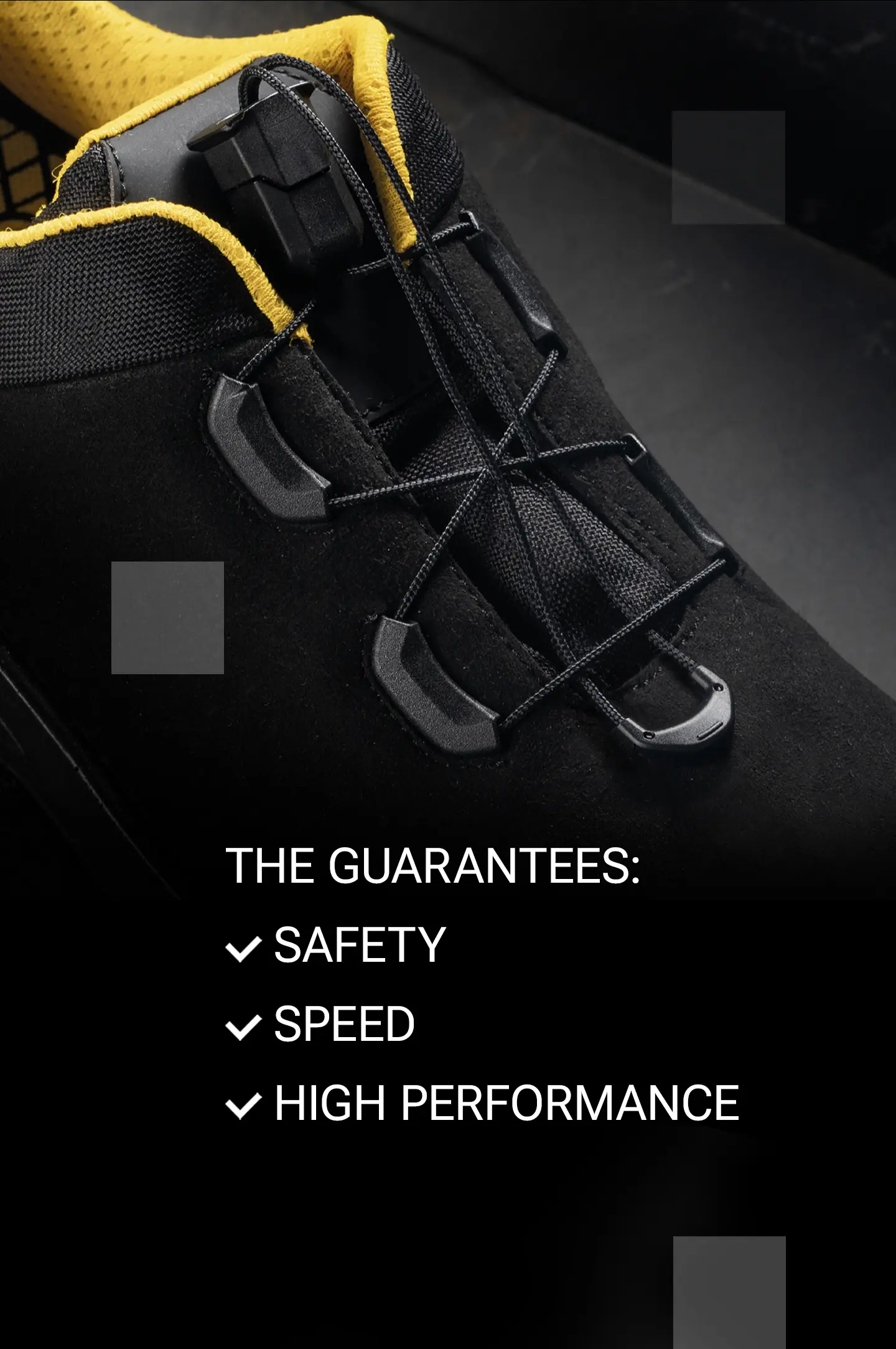 The new WOW quick-lace system redefines the concept of quick fastening: with just one hand, the shoe can be swiftly secured or released.